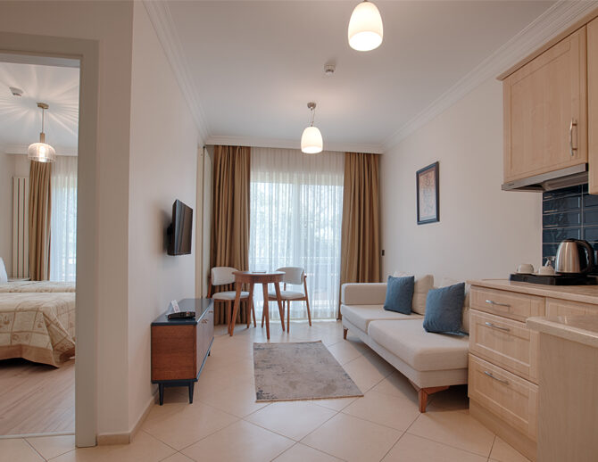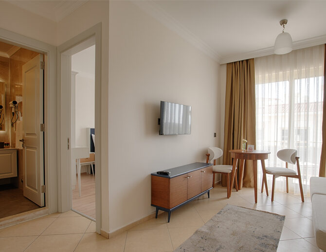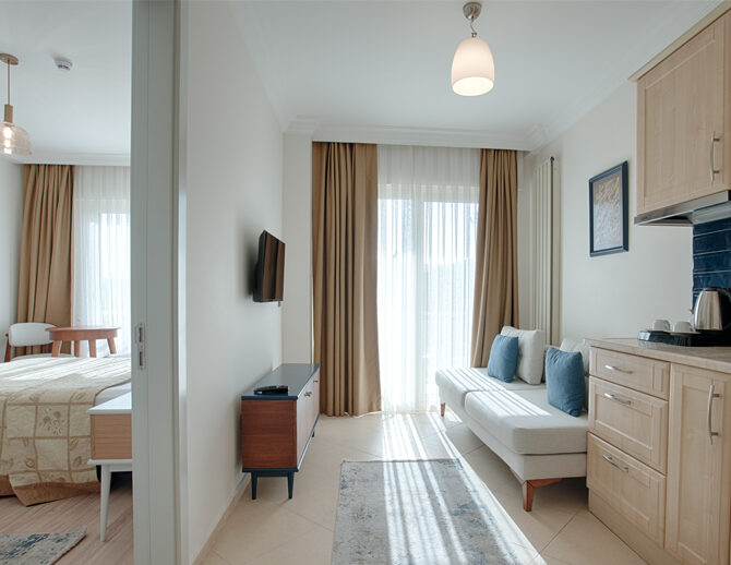 Konforlu bir konaklama deneyimi sunan Suit Room, modern detaylarla donatılmış, hem dinlenmeniz hem de kendinizi evinizde hissetmeniz için özel olarak tasarlanmıştır.