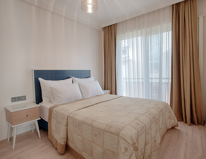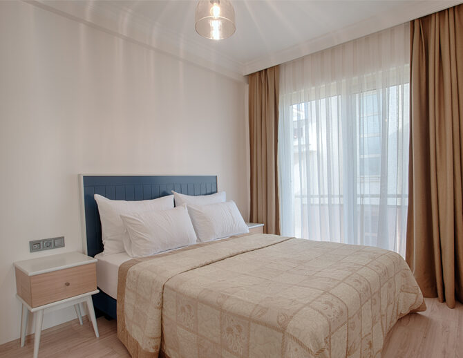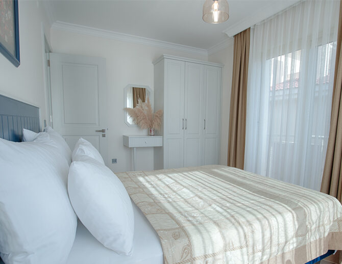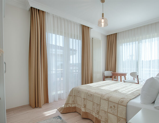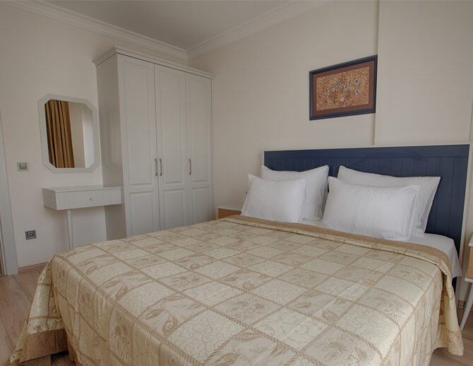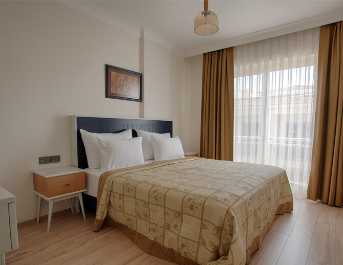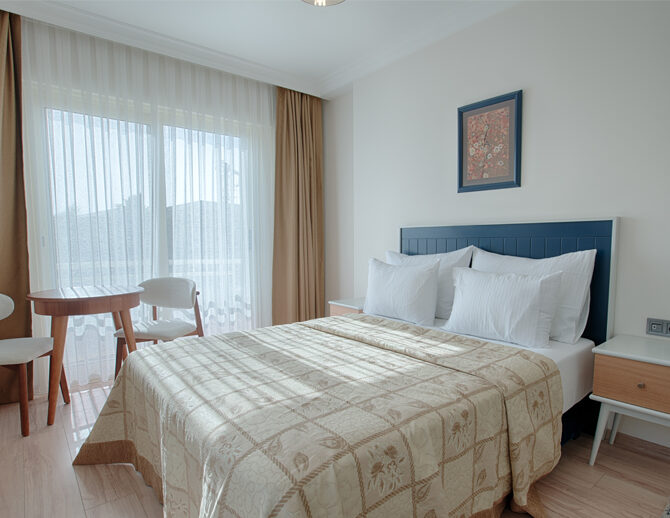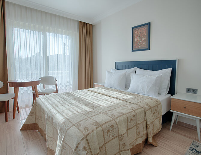 French yatak ile donatılan oda, ferah yapısı ve balkonlu mimarisi sayesinde günün her saatinde rahat nefes alabileceğiniz bir yaşam alanı sunar.